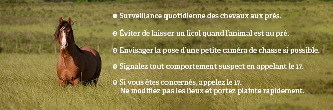 Les propriétaires d’équidés s’organisent comme ils peuvent pour protéger les animaux. Une carte localisant les mutilations a été établie, des rondes sont organisées, des caméras placées dans les prés, les animaux rapprochés des habitations.