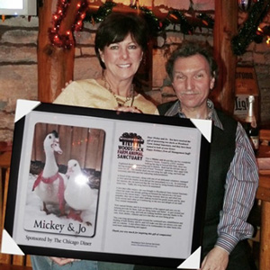 J’ai entendu parler la première fois du Woodstock Farm Animal Sanctuary à Chicago, dans un petit restaurant végétarien, le Chicago Diner. Une affiche dans le restaurant mentionnait « We proudly support Woodstock Farm Animal Sanctuary » avec la photo des deux canards qu’ils parrainaient, Mickey et Jo.