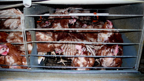 Après un an de ponte, les poules ne sont plus assez productives et sont envoyées à l'abattoir. Les souches de gallinacés utilisées dans les élevages de poules pondeuses sont différentes de celles utilisées pour produire des poulets de chair, les mâles sont donc broyés à la naissance (puisqu'ils ne pondent pas d'oeufs) et les femelles réformées seront abattues pour donner de la viande transformée.