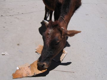 Vache se nourrissant de carton (Inde)