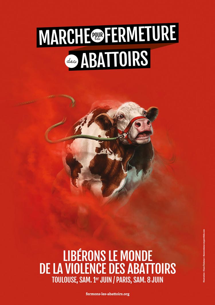 Peux-tu nous dire quelques mots sur ce visuel pour la Marche pour la fermeture des abattoirs et la façon dont tu l’as abordé ?